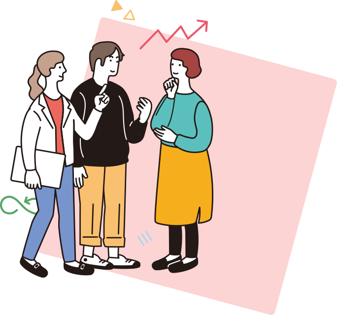 3人1組でバディを組み、日常業務や仕事への想いを共有することで、抱え込まない環境をつくり、社内の多様な価値観に触れる機会を提供しています。